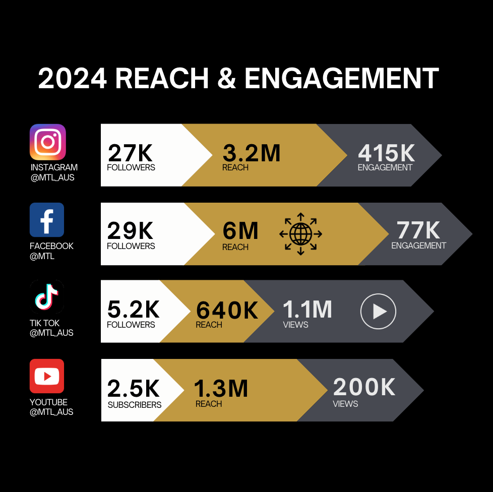 Partnerships are the cornerstone of MTL, offering unprecedented opportunities for Australian fighters. Elevate your brand visibility and enjoy a VIP experience with a rapidly expanding organisation rooted in strong values. Reach out today to access our information pack and price list.